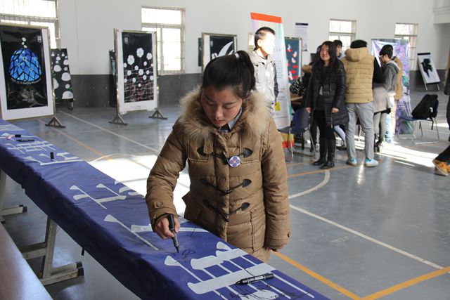 新闻中心联合南京艺术学院设计学院举办主题为“祭奠逝者•祈愿和平”的大学生主题设计作品展,三十幅创意精致、色彩凝重的设计作品表达了师生对南京大屠杀遇难同胞的无限哀思和对历史的深刻反思,同时也唤起了当代大学生强烈的爱国主义情怀。开展“紫金草行动”,为现场师生佩戴紫金徽章,团委干事高水冕深情地说道:“先辈们亲历的爱与恨,不需要提起也能刻骨铭心;先辈们遭遇的苦与痛,却很容易成为尘封的记忆。”机械工程系通讯员叶绘老师也说道:“种下一株紫金草,戴上一枚纪念章,我们用朴素的方式,提醒自己牢记那段屈辱的历史。”我们用草根的顽强,汇聚民族的力量,让世世代代用不遗忘。