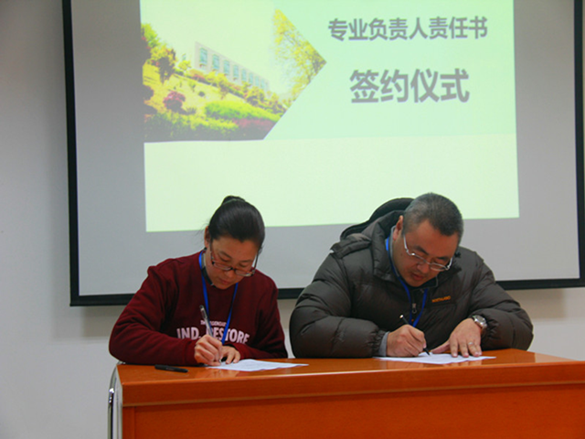 会上,刁爱军副院长宣读《关于聘任我院2017年专业建设各专业负责人的决定》、《关于批准建设2017年专业建设项目的决定》、《关于批准通识课程立项建设的决定》,并与各专业建设负责人签订建设责任书。