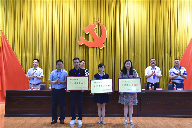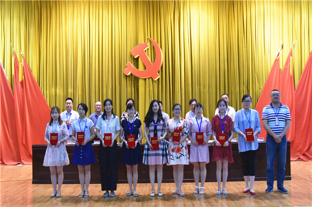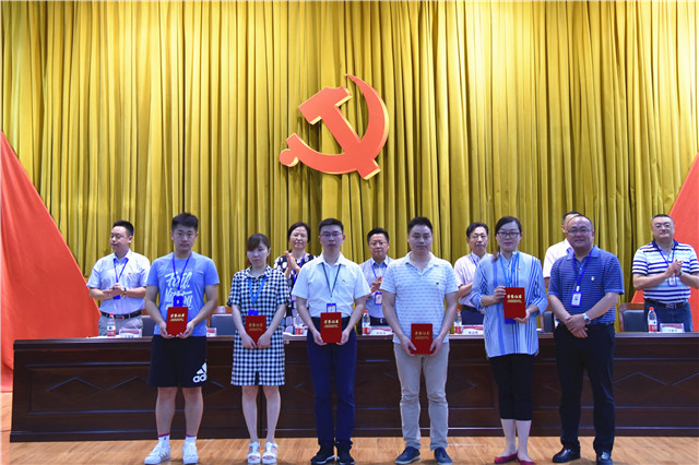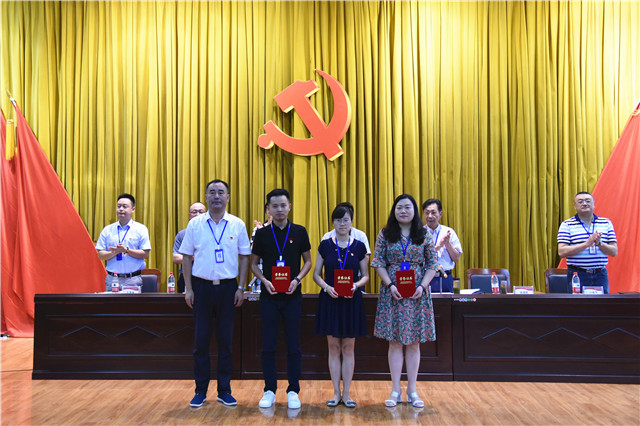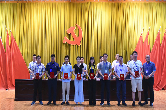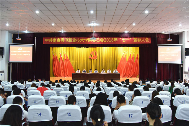 大会开始前,全体党员集体佩戴党员徽章入场。接下来党委副书记、常务副院长顾益明同志通报获得2017-2018年度新工集团、机电集团“优秀党务工作者”、“优秀党员”、 “先进基层党组织”等荣誉的人员及单位;纪委书记、副院长陈赵同志宣读学院“七一”表彰决定,与会领导为受到表彰的先进基层党组织、优秀共产党员、党委工作者颁发了奖牌和证书。