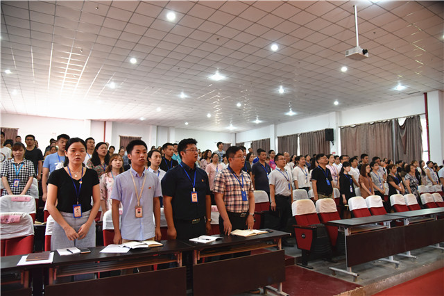 为庆祝建党97周年,认真贯彻落实党的十九大和十九届三中全会精神,以习近平总书记系列重要讲话精神为指导,统一思想,提高认识,引导和激励广大基层党组织、共产党员和党务工作者继续加强党性修养、改进工作作风,深入推进“两学一做”学习教育,表彰2017—2018学年先进基层党组织、优秀共产党员和优秀党务工作者,6月29日上午,我院在报告厅举行2018年度七一表彰大会。学院全体领导、教职工参加大会,会议由党委副书记、常务副院长顾益明主持。