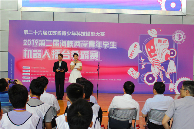 本届海峡两岸机器人大赛由江苏省青少年科技教育协会、江苏省科普服务中心、江苏省人工智能学会、南京市工程技术创新课程基地主办,由南京师范大学附属中学、亚太青少年科技创作协会承办,由南京大学、东南大学、南京理工大学、南京航空航天大学等单位支持。来自海峡两岸的初中、高中、大学近300支队伍携亲手设计制作的机器人参加“机器人擂台”、“机器人拔河”、“机器人跳远”三个项目的角逐。