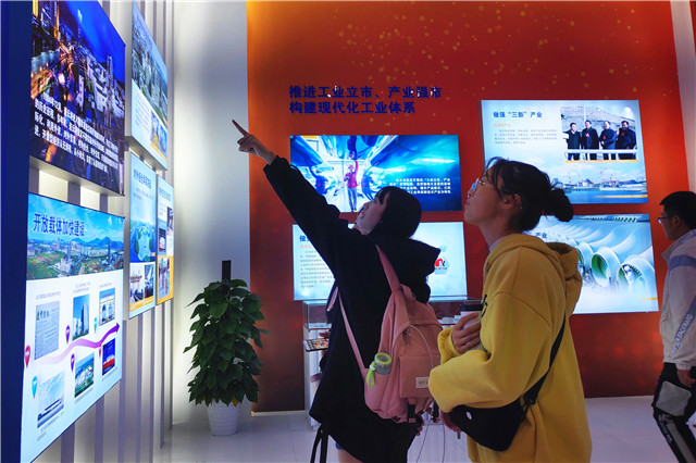 成就展序厅则突出展示了江苏解放、建设、改革和发展的伟大历程和巨大成就,以及各个历史时期具有代表性的重大历史事件、重大决策部署、重大建设成果,集中展示100多个“江苏第一”“江苏唯一”和“江苏之最”。步入新时代,江苏提出了“六个高质量”的发展目标。成就展现场也专门设立了“经济发展高质量”“改革开放高质量”“城乡建设高质量”“文化建设高质量”“生态环境高质量”“人民生活高质量”六个专题展区,通过实物、模型(沙盘)、多媒体和视频等多种形式,展现了全省上下在推动“六个高质量”发展,不断满足新时代人民群众对美好生活向往方面取得的新变化、新发展、新成就。