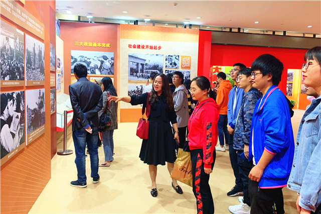 10月以来学院通过《我和我的祖国》快闪视频拍摄、庆祝中华人民共和国成立70周年迎新文艺晚会、参观成就展等庆祝新中国成立70周年系列活动,用师生们可知可感、广泛参与的生动形式让大家深刻感悟“没有共产党就没有新中国”,深刻理解必须坚定不移走好中国特色社会主义道路。后期学院将继续开展相关主题的系列活动,进一步鼓舞师生士气、增强信心、激发动能,凝聚起推动学院转型发展的强大正能量,朝着建设一所“有爱、有趣、有情怀”的特色名校的目标砥砺前行,为实现百年机电的宏伟蓝图而不懈奋斗。