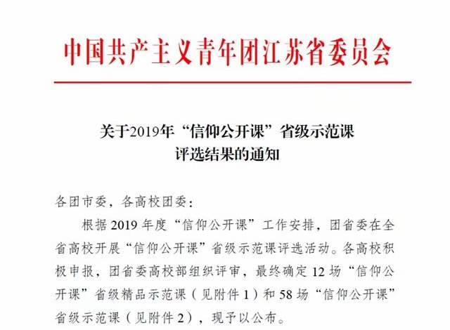 日前,共青团江苏省委公布了2019年“信仰公开课”省级示范课评选结果,我院人文社科系团总支书记杨军主持的《不忘初心,书影回忆》信仰公开课获评省级示范课。