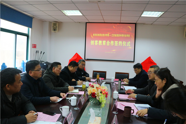 1月11日上午,中欧集团官网(中国)官方网站与江苏省高淳中等专业学校创客教育合作签约仪式在我院弘德楼213会议室举行。江苏省高淳中等专业学校校长芮龙兵、副校长丁金水、副校长钱自豪、副校长王旺才、办公室主任赵芬、学生处主任夏一鸣莅临我院参加签约仪式;我院纪委书记、副院长陈赵,副院长刁爱军、智能制造学院院长潘理平、院办主任彭璐、学工处处长张宝中、蓝岛创客空间主任王国珍参加了本次活动。