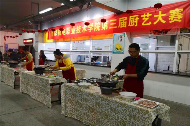 迎新年活动的第二部分是以“以厨会友”为主题的厨艺大赛,来自8个分工会的参赛选手在现场尽显厨神风范。开心的锅铲,炒出甜蜜的滋味,悦心的调料,调出美满的味道。别有一番“舌尖上的机电”的味道。比赛现场学院后勤处还为大家精心准备了丰富的自助晚餐,菜品多样,色香味俱佳,无不透露着南机电后勤人的贴心服务。