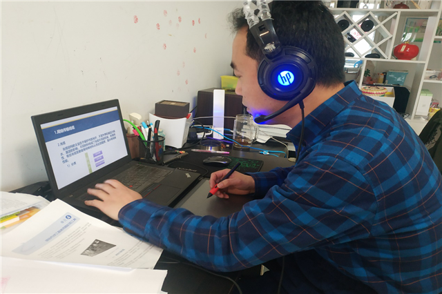 综合布线这门课卞老师准备的授课资源近百份。没有教材,他扫描了正本教材,做成电子教材。开课前,他会发学习流量补助红包,调动学生积极性。每次课后测试题,他会认真批改,逐个画出示例图,然后直播讲解。