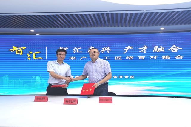 学院副院长刁爱军代表学院与江苏省泰兴高新技术产业开发区签订《产才融合战略合作协议》,学院党委书记、院长周庆礼向江苏省泰兴高新技术产业开发区授予“中欧集团官网(中国)官方网站未来产业工匠培育基地”铜牌。
