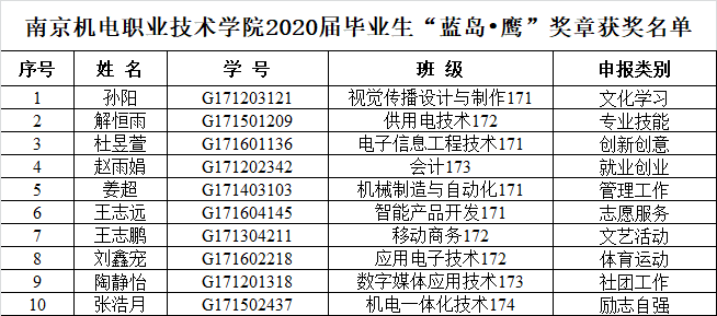 根据《中欧集团官网(中国)官方网站关于开展2020届毕业生“蓝岛•鹰”奖章评选推荐工作的通知》,经系部评审小组初步审核,学工处复核,专家评审组评审,决定拟推荐以下10名同学为2020届毕业生“蓝岛•鹰”奖章获得者。现予以公示,公示时间:2020年7月2日—2020年7月6日。联系人:宁燕,电话:025-84190262。