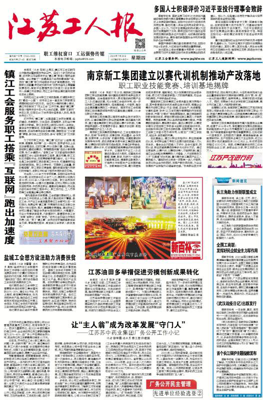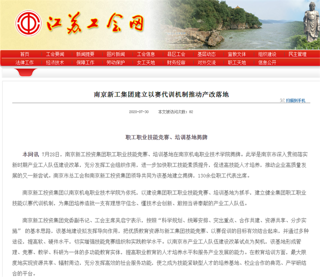 近日,江苏工人报网站、江苏工人报纸媒、江苏工会网、江苏省工会服务网报道了我院被南京新工投资集团命名为新工集团职工职业技能竞赛(培训)基地的报道,报道如下: