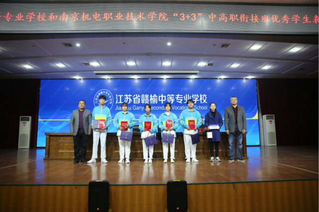 2020年10月28日下午,江苏省赣榆中等专业学校校长王慈热情的接待刁院长一行,并介绍了学校发展历程,对于与我院合作现代职业教育体系项目取得成绩给予肯定。学院党委委员、副院长刁爱军介绍了学院的概况、发展历程和办学思路,以及新校区建设等情况,希望通过两校现代职业教育体系项目的合作,在创客教育、智能制造、师生技能竞赛等方面拓展全方位的合作渠道。江苏省赣榆中等专业学校副校长李勇、副校长盛冬等一起参加交流活动。     随后,双方校领导共同出席两校江苏省现代职教体系“3+3”项目学生表彰大会,为合作项目班级授予班牌,并向在现代职教体系“3+3”项目过程学习期间,综合表现优异的学生颁发荣誉证书和奖品。刁院长鼓励同学们在中职阶段做好知识储备,学好技能、提升素质、全面发展,为今后高职阶段的的学习打好基础。