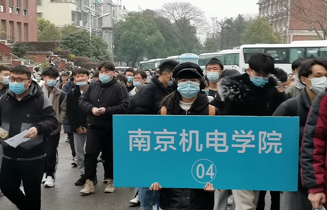 按照省考试院要求,由于疫情因素,江苏省内学生考试前需上报14天的行动轨迹,省外学生需做核酸检测。为保证考生路途安全和考点要求,由学校统一安排了20辆大巴车将学生从铁心桥地铁站送往考试地点三江学院。每辆车指定1名老师负责,专门负责考生交通安全和防疫保障。上车前,负责学生的体温测量、检查苏康码、14天行动轨迹和外省学生的核酸检测报告。