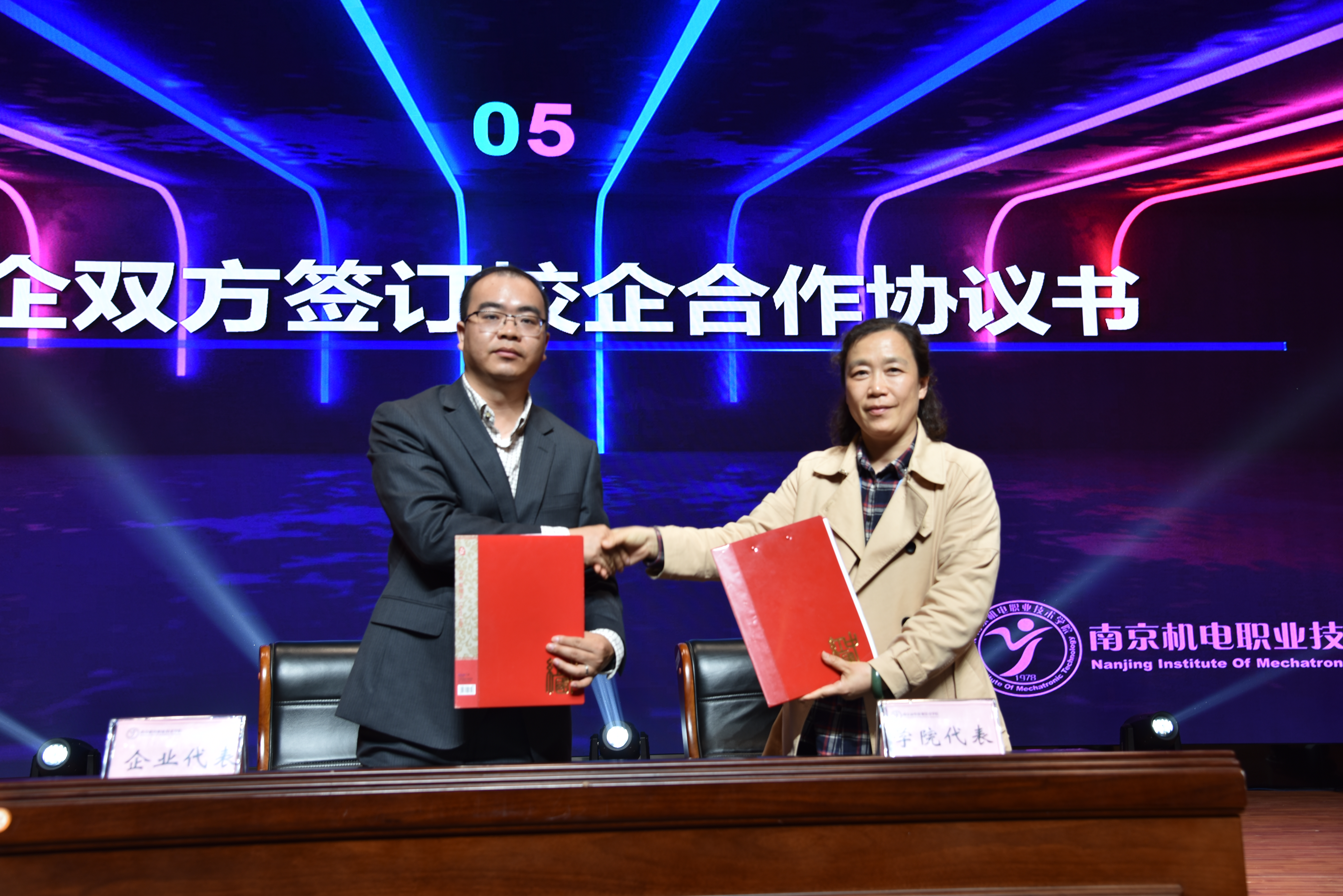 4月27日下午,南京机电职业技术学院华为 ICT 学院签约揭牌仪式在学院报告厅举行。高淳区教育局副局长吕明霞,南京市高等职业教育创新创业园副主任孙爱国,华为政企部副总经理晁文广、江苏万和系统工程有限公司董事长宋天兵出席揭牌仪式,华为江苏教育行业副总经理杨文彬,华为江苏人才生态总监杨鹏、学校党委委员、副院长刁爱军、信息工程系主任王玮出席签约仪式。信息工程系全体教职工、2020级全体学生近700余人参加仪式。仪式由校企合作处处长李木香主持。