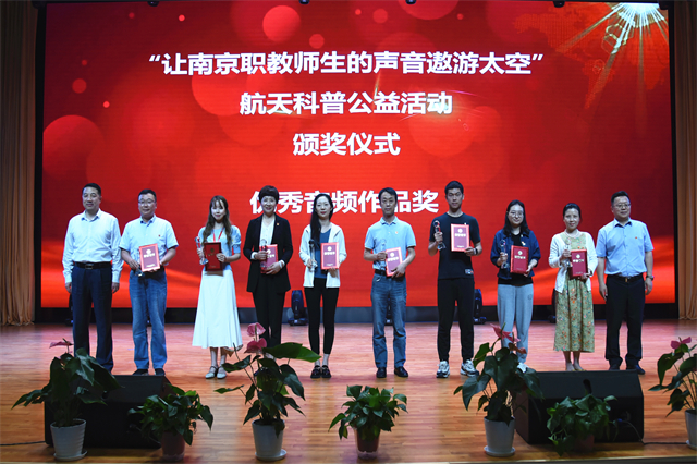 活动现场全场嘉宾观看了中国航天大会宣传视频。视频回顾了中国航天事业的发展历程,追忆了中国历代航天人为中国航天事业起步、发展、腾飞而做出的不懈努力。南京市职业技术教育学会领导宣读了“让南京职教师生的声音遨游太空”系列科普公益活动的获奖名单。南京市莫愁中等专业学校等3所学校的师生获最具内涵奖,南京财经高等职业技术学校等3所学校的师生获最具创意奖,南京高等职业技术学校等3所学校的师生获最具文采奖。中欧集团官网(中国)官方网站、南京高等职业技术学校、南京新港中等专业学校、南京六合中等专业学校等4所学校获最佳组织奖,南京玄武中等专业学校获最佳支持奖。南京市职业技术教育学会在本次活动中获“合作贡献奖”。