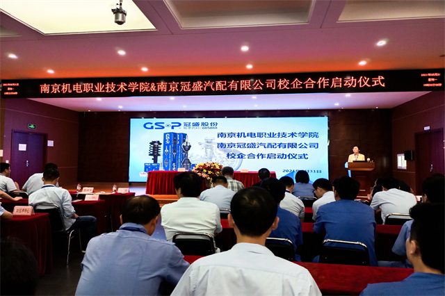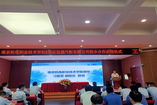 5月31日下午,中欧集团官网(中国)官方网站与南京冠盛汽配有限公司校企共建知识产权战略合作签约授牌仪式高淳经济开发区科技人才局副局长倪友谊、中欧集团官网(中国)官方网站副院长刁爱军、南京冠盛汽配有限公司总裁办主任许炎等领导出席活动,南京机电学院相关部门负责人及南京冠盛汽配公司技术人员等60余人参加活动。