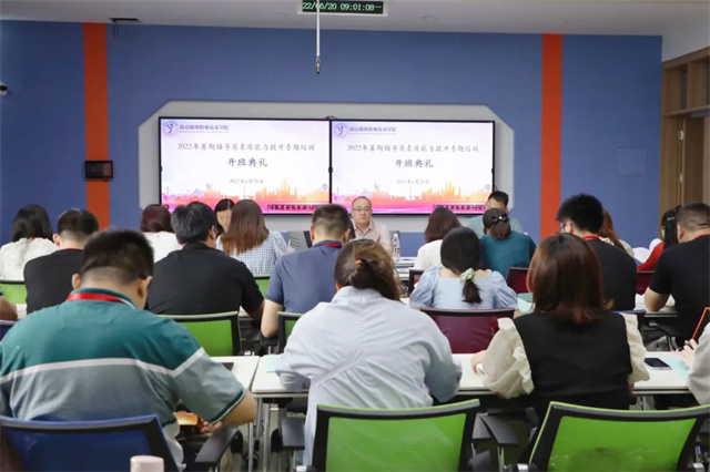 为深入学习贯彻习近平新时代中国特色社会主义思想,落实立德树人根本任务,提升辅导员思想政治素质、职业素养和业务水平,切实加强我校辅导员队伍专业化、职业化建设,学生工作处于6月20日-23日在思学楼410教室开展为期4天的2022年暑期辅导员素质能力提升专题培训。学校党委委员、副院长赵学洪,人事处处长夏玲玲出席培训会,各系部书记、办公室主任、学工干事、全体辅导员、学生工作处全体工作人员共50余人参加了培训。培训由学生工作处处长张宝中主持。