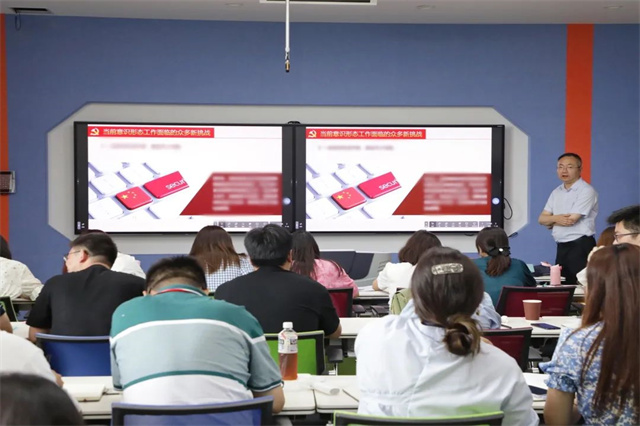 杨军就做好新形势下意识形态(网络意识形态)工作做了专题讲座。杨主任主要从当前意识形态工作面临挑战、落实好意识形态工作责任制以及切实做好意识形态工作这三个方面切入,结合相关政策、传播理论和鲜活案例对报告主题作了深入浅出的分析解读,让参训老师进一步认清了当前高校的意识形态工作形势,并为我校进一步做好新时代意识形态工作,提供了很好的思路和指导。
