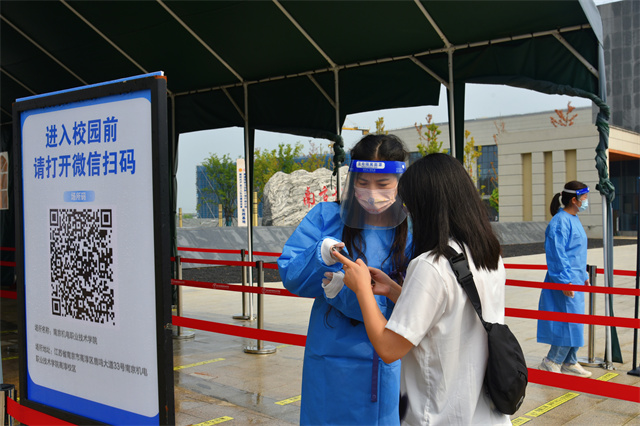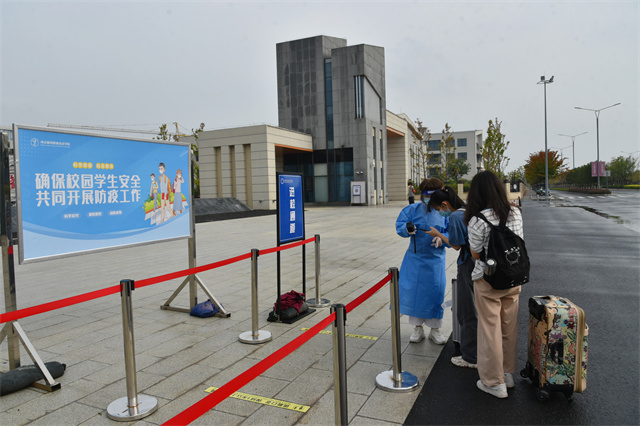 报到现场秩序井然,返校学生严格遵守“扫码核验——查验体温——卫生消杀”等程序进入校园。学工处、保卫处、后勤处及各系部分工协作、密切配合,做好学生返校报到现场周边的秩序维护和身份核验、交通管制引导、行李消杀等工作,为学生安全平稳有序返校保驾护航。