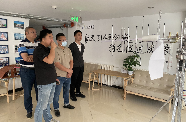 9月6日,我校一行人员来到空天创客考察,空天创客创始人耿赛猛介绍了单位在航空创客活动中的作品以及单位在航空创客教育工作中的成果,周庆礼就我院相关课程建设、教具设计问题和耿总做了进一步交流。