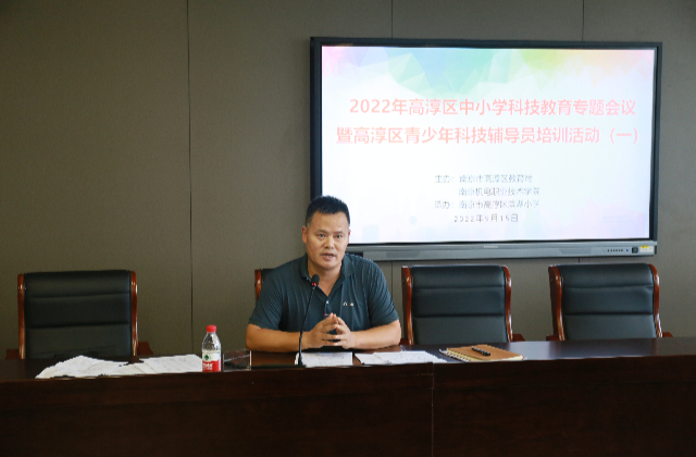 2022年9月15日,为切实提升高淳区中小学校青少年科技辅导员队伍的科学素养和创新能力,我校蓝岛创客空间王国珍、杨阳前往高淳区滨湖小学参加“2022年高淳区中小学科技教育专题会议暨高淳区青少年科技辅导员培训活动”,为现场教师进行创新能力的相关培训。 本次活动由南京市高淳区教育局和中欧集团官网(中国)官方网站主办,南京市高淳区滨湖小学承办。高淳区教育局基础教育科王云生和高淳区各中小学的青少年科技辅导员均参加了本次活动。
