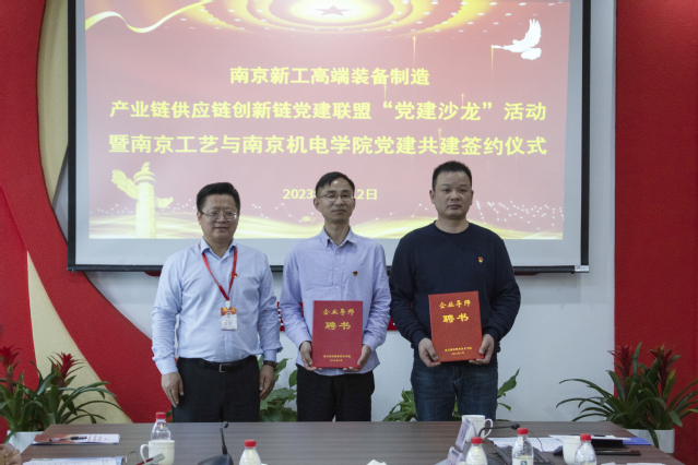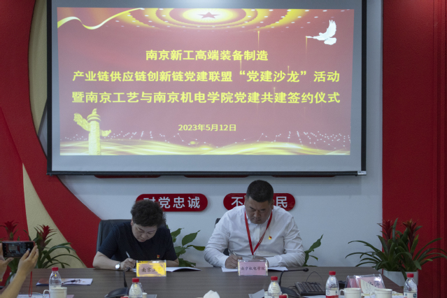 学校机械工程系党支部、机关三支部分别与南京工装丝杠生产党支部、技术党支部签署了支部的党建共建协议。