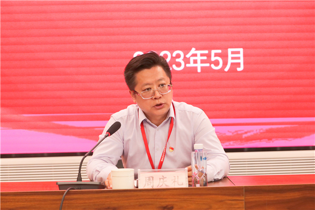 周庆礼就切实开展好学校主题教育提出四个方面要求:一是要切实提高政治站位,深刻领会主题教育的重大意义。开展这次主题教育,是贯彻落实党的二十大精神的重大举措,对于统一全党思想、解决党内存在的突出问题、始终保持党同人民群众血肉联系、推动党和国家事业发展,具有重要意义。二是要准确把握目标任务,高标准高质量开展主题教育。我们一定要严格按照中央和省委、市委和集团党委的统一部署,牢牢把握“学思想、强党性,重实践、建新功”的总要求,紧紧围绕“坚持学思用贯通、知信行统一,把习近平新时代中国特色社会主义思想转化为坚定理想、锤炼党性和指导实践、推动工作的强大力量,使全体党员始终保持统一的思想、坚定的意志、协调的行动、强大的战斗力,努力在以学铸魂、以学增智、以学正风、以学促干方面取得实实在在的成效。三是要牢牢抓住重点措施,推动主题教育有力有序开展。学校各级党组织既要严格落实中央、省委、市委和集团党委的“规定动作”,又要结合学校工作实际,创新做好“自选动作”,不断增强学校主题教育的深入性、针对性、实效性,让学校党员干部真正在思想上得升华、能力上有提升、工作上见实绩。四是要着力强化组织领导,确保主题教育取得实在成效。要压紧压实责任、加强统筹协调、从严督促指导、强化宣传引导、弘扬优良作风。