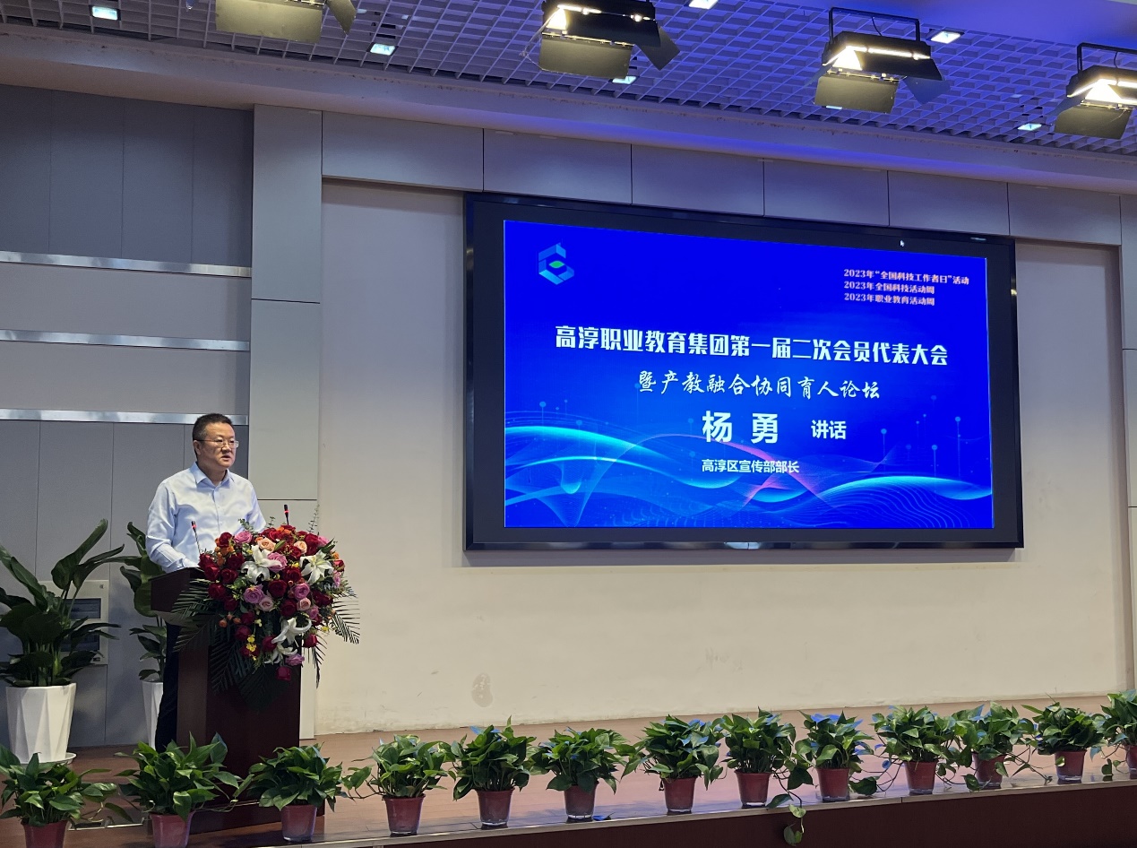 高淳区委宣传部部长杨勇强调,高淳职业教育要全面贯彻党的二十大精神,进一步推动资源整合融合,广泛开展校企合作、专业建设、学生实训等一系列教学创新改革,促进教育链、人才链、产业链、创新链的有机衔接;引领现代人才发展,推动专业跟着产业走,职业跟着需求走,人才跟着发展走。