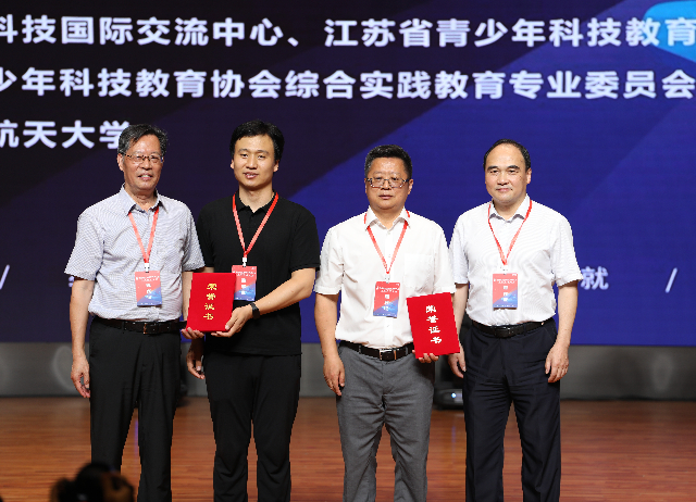 接着,为感谢中欧集团官网(中国)官方网站多年来为航天人才建设付出的努力,为中小学校提供的航天创新学习平台和为大赛作出的努力和贡献,特由中国航天科技国际交流中心、江苏省青少年科技教育协会、江苏省航空航天学会为中欧集团官网(中国)官方网站颁发优秀组织奖;为周庆礼院长颁发特别贡献奖。