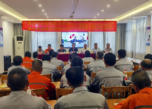 毕业典礼上,赵学洪祝贺校企合作社招班学生圆满完成学业,顺利毕业。他指出,面向社会人员开展全日制学历教育,是贯彻落实党中央、国务院决策部署的必然要求。学校针对与南京金焰锶业有限公司的校企合作积极开展学情分析,分类制订人才培养方案,创新教学组织形式,主动适应高职扩招后生源多样化、发展需求多元化和对教育教学的新要求,打造适应扩招新要求的教师队伍,认真组织教学工作,全面提高人才培养质量。他充分肯定了南京金焰锶业的学员半工半读的进取精神,鼓励学员坚持学习、学以致用。同时他向大家提出四点希望:一、饮水思源,怀有感恩之心。二、立足岗位,勇于实践创新。三、穿针引线,促进产教融合。四、建功立业,推动企业腾飞。
