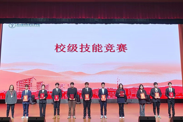 教务处处长陈云霞为校级技能竞赛获奖代表颁发证书