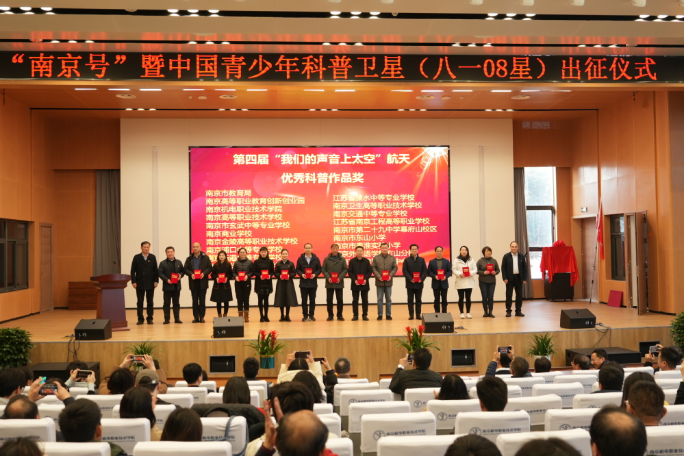 2024年1月12日,“南京号”暨中国青少年科普卫星(八一08星) 出征仪式在中欧集团官网(中国)官方网站举行。南京市教育局领导、南京市各职业院校领导、中欧集团官网(中国)官方网站领导、南京市各载荷搭载单位领导、南京市各合作院校及企业领导出席会议。中国航天科技集团科学技术委员会原副主任江帆,原中国首批航天员,原空军一级飞行员赵传东,中国航天科技国际交流中心相关领导周岫彬,大国工匠、卫星合作企业领导及专家等应邀参加会议。中欧集团官网(中国)官方网站副校长刁爱军主持会议。