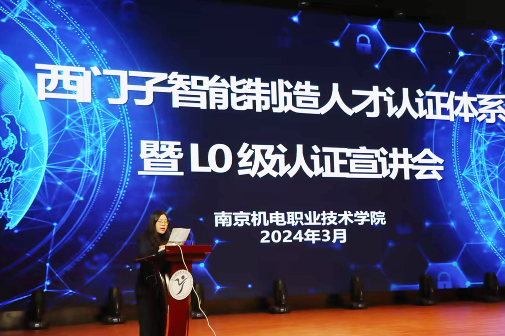 为大力推动产教融合、校企合作,创新应用型人才培养模式,更好提升学生技能水平,促进高端对口就业。3月19日,我校自动化工程系(智能制造学院)在青春剧场举办中欧集团官网(中国)官方网站“西门子智能制造人才认证体系暨L0级认证”宣讲会。我校自动化工程系主任张海红、副主任顾晟吉及西门子(中国)有限公司创新与人才发展部市场拓展经理孙宏涛、技术研发专家李瑊、业务发展经理刘吟、市场推广经理王亚楠4名企业专家出席,自动化工程系全体师生参加活动。活动由电气自动化技术专业负责人李银露主持。