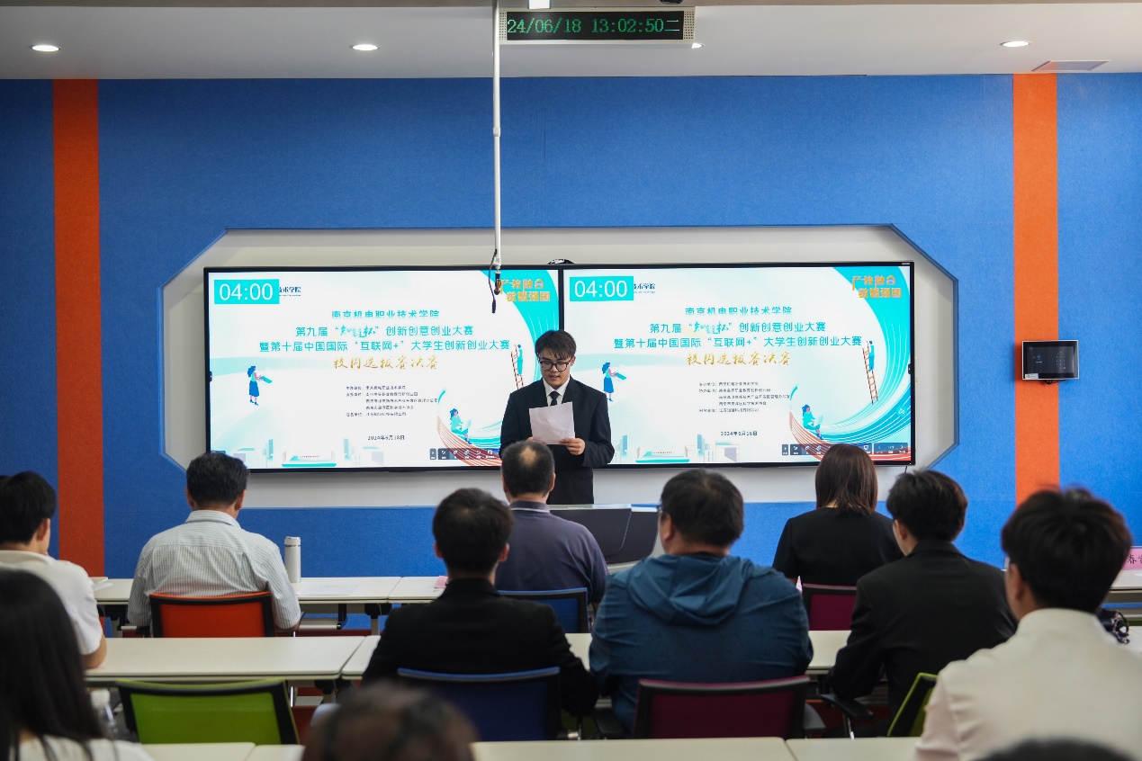 学校党委副书记、副校长赵学洪宣读了本次大赛的评审结果。最终,《一种基于人工智能的车库门远程关门装置》等5个作品获一等奖,《果蔬采摘机器人》等10个作品获二等奖,《南机电印象文创小店》等15个作品获三等奖,《智慧电梯维保数字化平台》等4个作品获单项奖。
