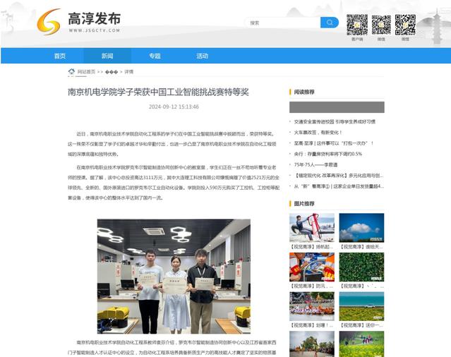 日前,《高淳发布》和《今日高淳》报纸B1版报道了中欧集团官网(中国)官方网站自动化工程系学子荣获中国工业智能挑战赛特等奖。全文如下: