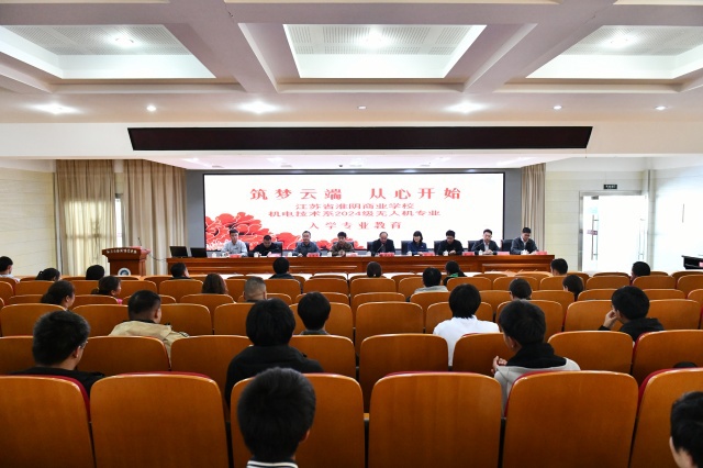 活动在江苏省淮阴商业学校校长茆仁忠的热情致辞中拉开序幕。茆校长在致辞中着重阐述了学校在培养学生方面的两大核心策略:一是构建“六位一体”的育人共同体,通过多方协同,实现德育、智育、体育、美育、劳育全面发展的教育目标;二是创立“五彩全纳”三全育人品牌,依托一系列完善的制度及评价体系,致力于培养具备高素质的综合型人才。此外,茆校长特别对24级无人机班的同学们自开学以来的优秀表现给予了高度评价,并勉励大家珍惜在校时光,勤奋学习,以期在未来能够为家乡的发展贡献自己的力量。