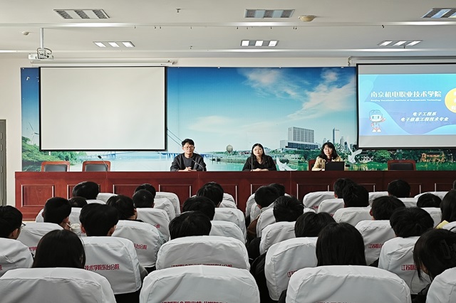 前景及专升本情况,课堂上师生互动频繁,氛围热烈,有效激发了学生的学习热情,提高了学生的专业兴趣。随后,电子工程系副主任丁向琴面向学生就转段要求进行了详尽介绍。介绍旨在激励学生努力学习专业课,为顺利转段奠定坚实基础。