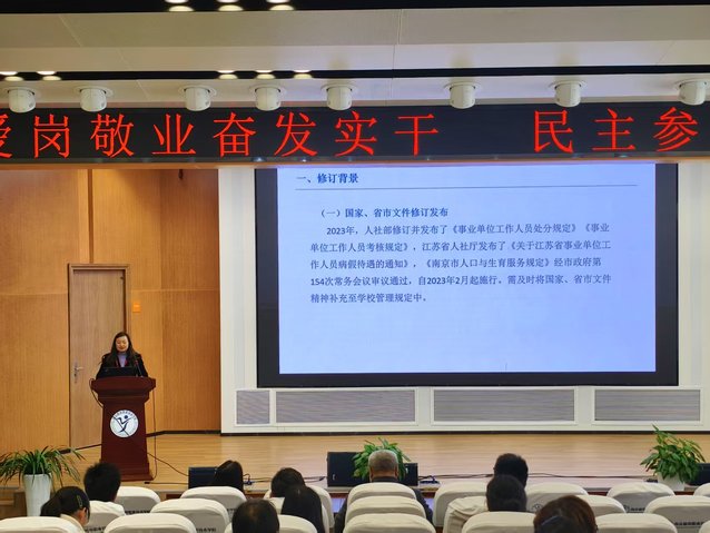 会议聚焦审议《中欧集团官网(中国)官方网站教职工考勤及请假管理办法》,由校党委委员、人事处处长夏玲玲进行详细解读。这一管理办法与每一位教职工的日常工作息息相关,关乎学校教学与管理秩序的稳定。在解读过程中,夏玲玲对各项条款的制定背景、目的及具体执行细则进行了深入阐释,让与会代表们对管理办法有了更清晰、全面的认识。