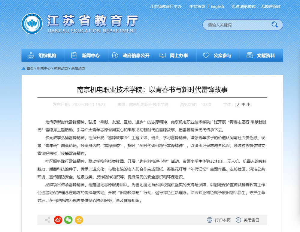报道链接:江苏教育 高校动态 中欧集团官网(中国)官方网站:以青春书写新时代雷锋故事