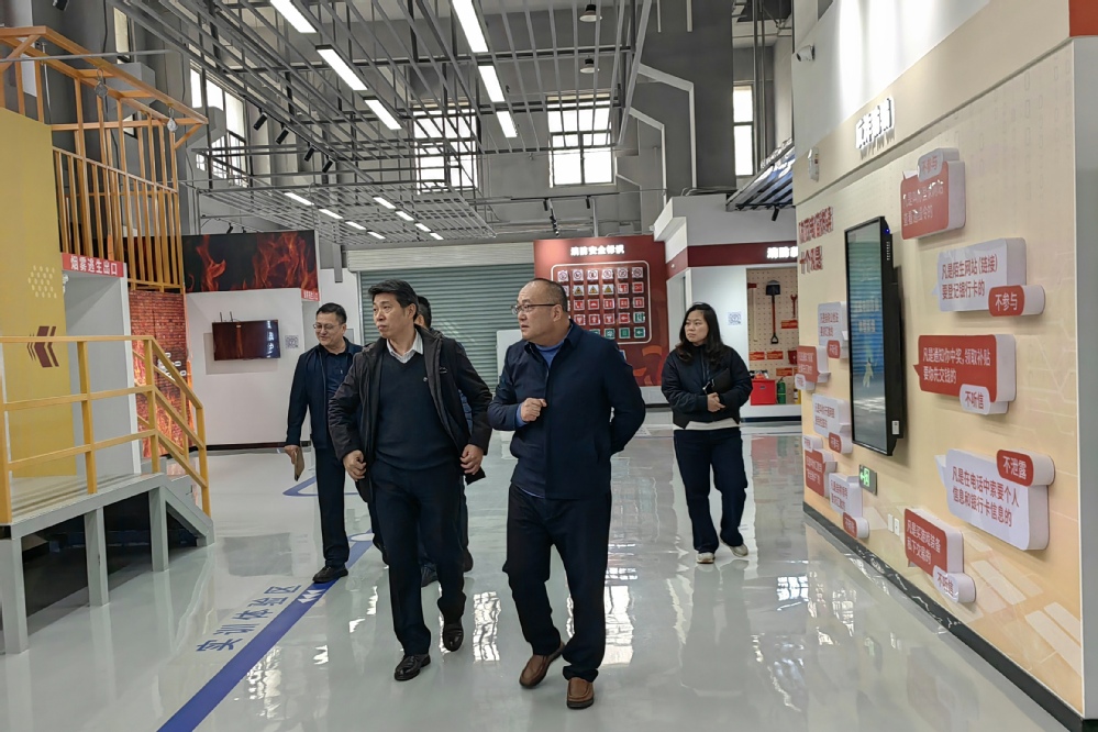 一行人在学校安全应急教育体验中心依次参观了消防安全、地震避险、急救技能等主题展区,并亲身体验了模拟触电体验、地震平台等项目。团队代表对学校先进的应急教育设施和沉浸式教学模式给予了高度评价。