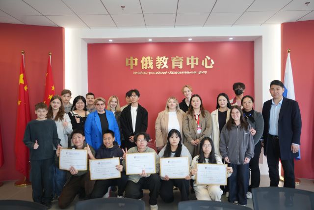 双方在学校中俄教育中心举办2025年青年俄语书法比赛颁奖仪式。此次比赛由白俄罗斯国立大学中国预科学院和中俄未来人才培养计划项目办公室共同组织。莫斯科市2200 学校教育主任顾问叶卡捷琳娜·叶夫根尼耶夫娜,学校党委委员、纪委书记、工会主席姜振宇,白俄罗斯国立大学中国预科学院中方院长、中国教育国际交流研修学院中俄教育合作办公室副主任张践,中俄未来人才培养计划项目办公室副主任管林子出席本次颁奖仪式,并分别为本次获奖的同学颁发证书,合影留念。