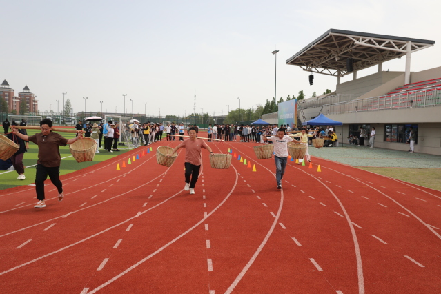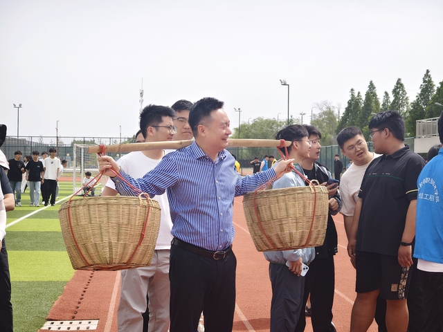 运动会现场气氛热烈,师生们精神饱满、斗志昂扬。此次运动会紧扣劳动主题,运动会项目丰富多样,各有亮点。在“急速搬运工——农田物资接力赛”中,师生们肩挑扁担,跨越重重障碍物,接力运送 “粮食”。比赛过程紧张激烈,大家不仅要比拼速度,还要确保“粮食”少洒落,充分考验了团队成员的抗压协作能力。