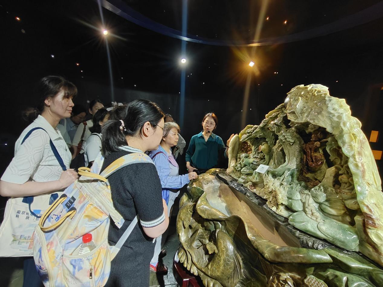 活动中,科技工作者参观了“地学摇篮”“生命演化”等 6大展厅。“地学摇篮” 展厅以历史史料呈现中国地质科学起源,展现李四光等先驱的科研历程;“生命演化” 展厅通过化石与模型,直观呈现地球 46 亿年生命进化史,栩栩如生的中生代恐龙展区让科技工作者叹为观止;“中国石文化” 展厅以和田玉等珍品梳理玉石在中华文明中的文化内涵;“矿产资源” 与 “地质环境” 展厅结合实用视角普及资源利用与灾害防治知识。