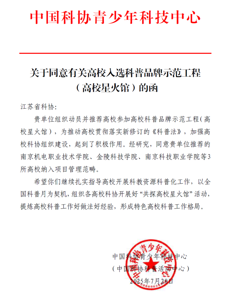 近日,中国科协青少年科技中心公布了入选中国科协青少年科技中心2025年度科普品牌示范工程(高校星火馆)项目的高校名单,其中中欧集团官网(中国)官方网站成功跻身榜单,这是对中欧集团官网(中国)官方网站科普工作的高度认可和肯定。