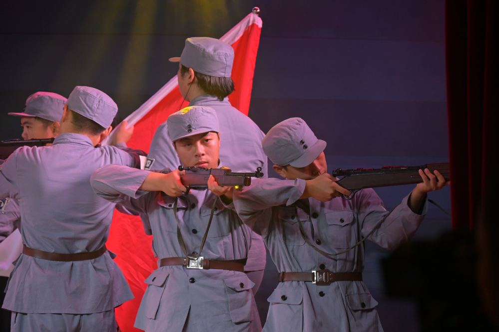 8月28日,省新四军和华中抗日根据地研究会在南京以文艺演出纪念抗战胜利80周年。新四军老战士李剑锋、丁位西、安迪光、姜文特等近300名观众观看演出。我校师生代表南京市新四军和华中抗日根据地研究会出演原创情景剧《东进!东进!东进!》,重现了新四军东进北上、浴血奋战的壮阔征程,赢得现场热烈掌声。