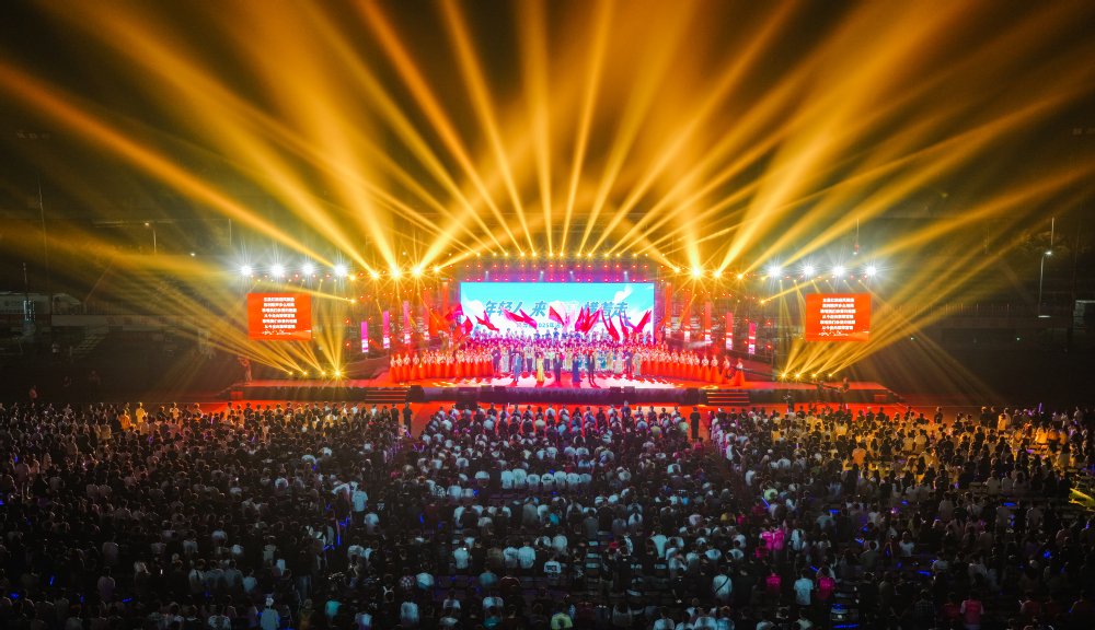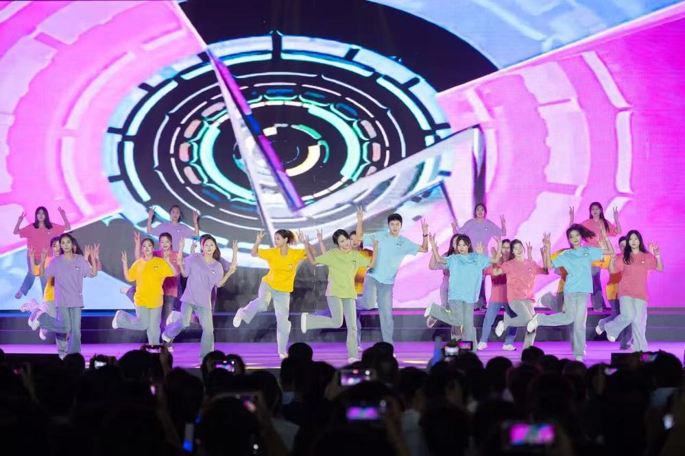 随后的青春晚会高潮迭起。魔性上头的固城湖螃蟹舞 《年轻人,蟹你来》 完美诠释了“横着走”的自信姿态;深情激昂的情景剧 《东进!东进!东进!》 让红色血脉在心中激荡;歌曲串烧《如歌的青春》引发阵阵欢呼;最终,全场新生在《歌唱祖国》的雄壮合唱中,许下了“奔赴未来可期”的青春誓言。