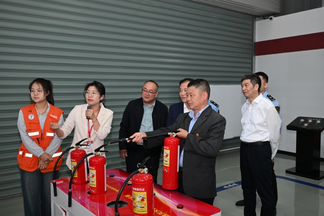 在安全应急体验中心,朱启军等各位领导学习了总体国家安全观,逐一参观体验了VR模拟逃生、模拟驾驶、触电感应、消防场景模拟灭火、地震应急演练、急救技能实操等6大展区18个体验项目,并对我学校“11633”安全文化体系以及“强化科技赋能、互动实践,推动安全知识“可感、可触、可用”的安全宣传教育培训模式表示肯定。