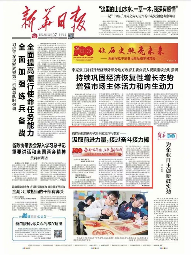 3月27日《新华日报》头版中,刊发了我系团总支学生副书记、会计191班团支部书记范灿同学作为参加教育部举办的“党史云答题”活动代表接受《新华日报》记者采访。