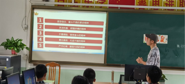 宣讲主题班课上,主讲人陈童和龚燕明同学,通过一个个生动有趣的小故事向港口小学的青少年讲诉了长征过程中红军四渡赤水的机智、飞夺泸定桥的英勇、过雪山时的艰难、过草地时的坚强以及最后三军会师的壮观景象,形象地表述了“长征精神”的四大主要内涵——乐观主义、英雄主义、创新胆略、集体主义。青少年学习并感受了“长征精神”,对于他们今后的学习、生活都有着重大的指导意义。