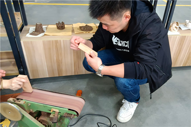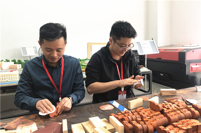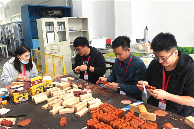 活动中,党员老师们在学院蓝岛创客导师的精心指导下动手制作“党员徽章工艺摆台”,经过切割、刻字,钻孔、打磨、上蜡等工序,亲手制作出精美的木质磁力党员徽章摆台。通过参加此次活动,全体党员接受了一次心灵的洗礼,同时也增强了实践动手能力。
