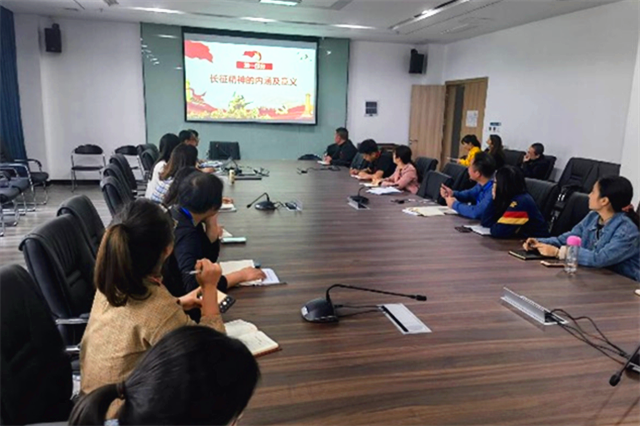 以第一位主讲老师——第一党小组的桑晶老师为例,桑老师给大家带来了以“长征精神”为主题的红色党史课,从长征精神的内涵及意义,长征中的重要战役和走好新时代的长征路等三个方面来进行阐述,指出长征精神就是不畏艰难,不怕困苦,不怕牺牲的革命英雄主义精神,现在的幸福生活,都是老一辈革命家用鲜血和生命换来的,所以我们一定要珍惜,继续努力为人民过上更加美好的生活而奋斗!